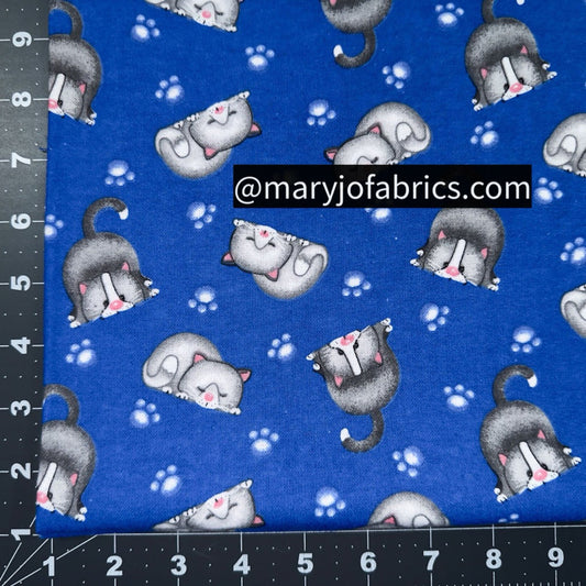 Cute Grey Cats FLANNEL Blue N1054-77 Kitten Flannel