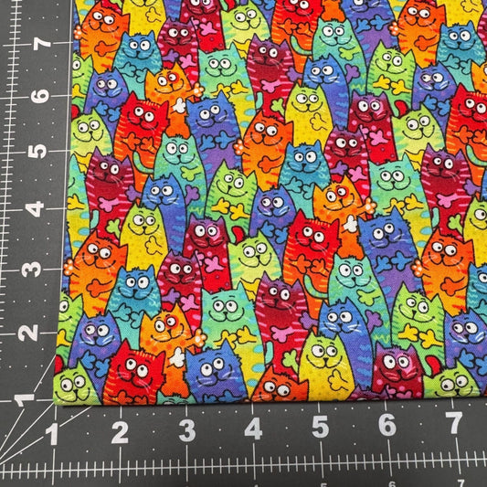Crazy cat fabric 1556-6797 Colorful packed cats