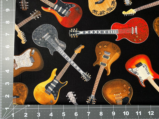 Guitar fabric C1611 Black Tossed Guitars cotton fabric