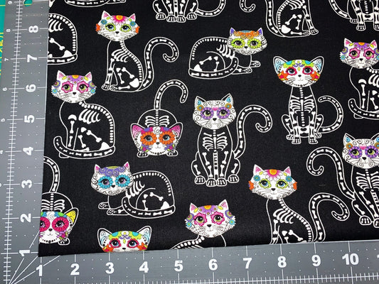 Sugar Skull Cat fabric Skeleton cat cotton fabric