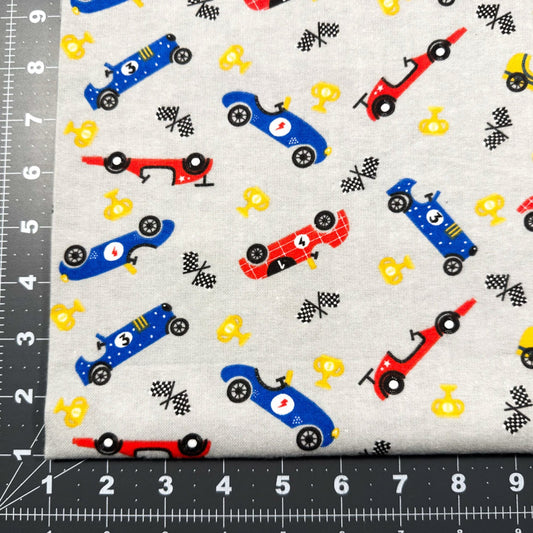 Race Car Cotton FLANNEL 1058 Gray flannel