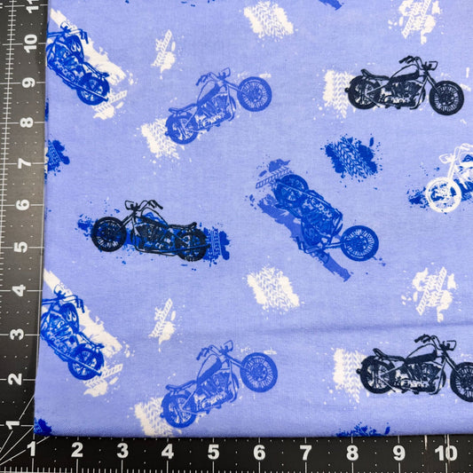 Blue Motorcycle FLANNEL Fabric 0993-11 Motorbike