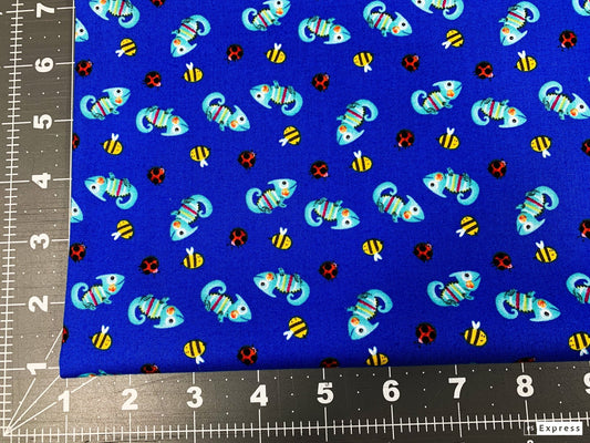 Royal Blue Chameleon fabric 9250 ladybugs bees