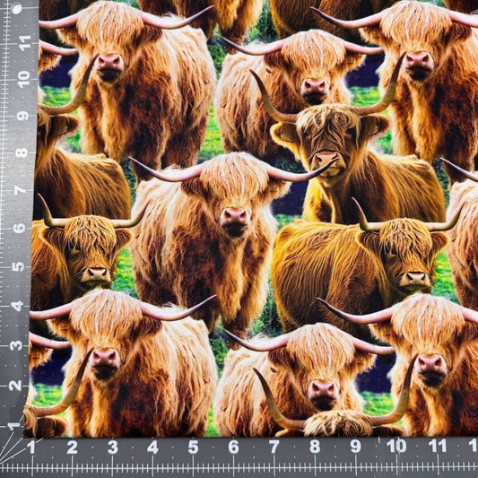 Blue Highland Cow Fabric 81429 Highland Ranch Cowgirl