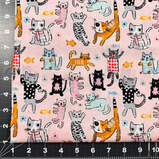 Cute Pink cats fabric 2034-0055 Novelty Cat Cotton Fabric