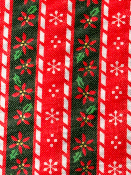 Christmas Stripe fabric Poinsettia and Snowflake Cotton