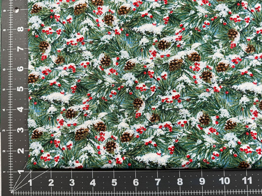 Winter Pine cone fabric Christmas pine tree cotton fabric