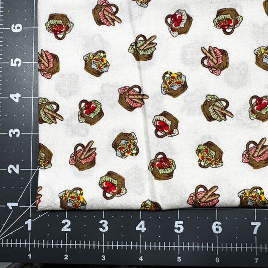 Picnic baskets and Apples Cotton Fabric 50300 Cream