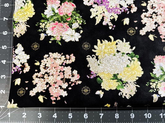Japan inspired floral fabric M3407 Japanese flower bouquet