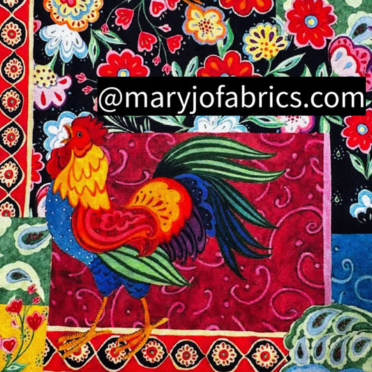 Calico Red Rooster Cotton Fabric CP60079 Chickens