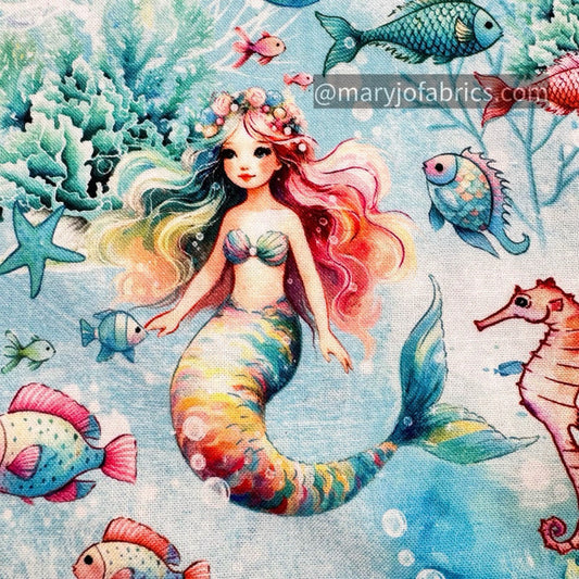 Blue Mermaid fabric CD3547 Underwater Mermaids