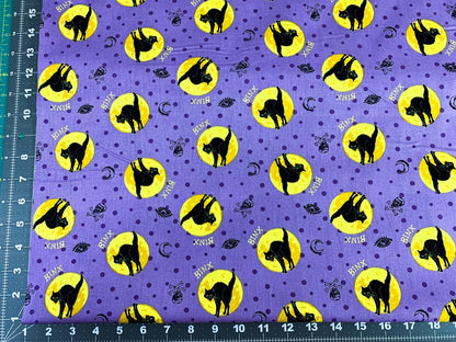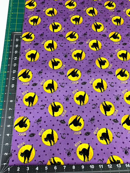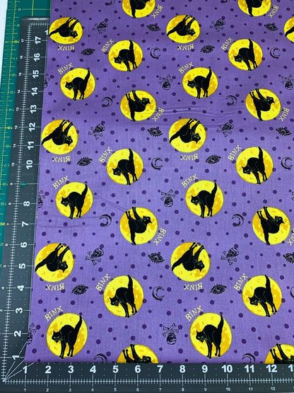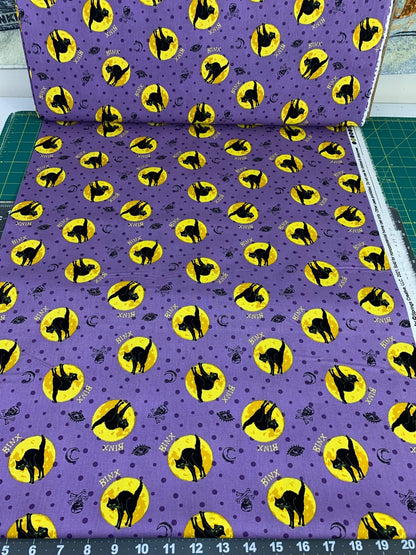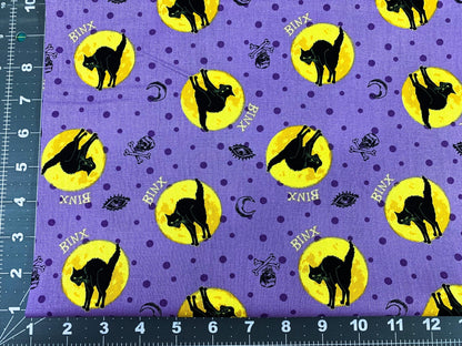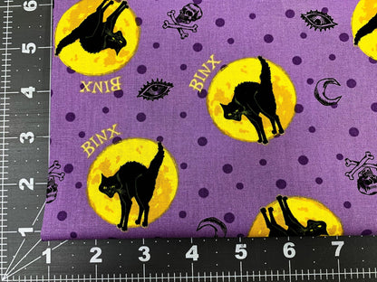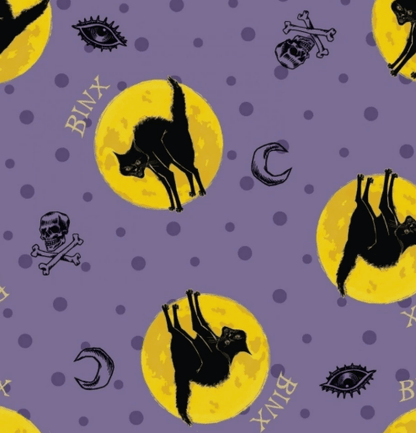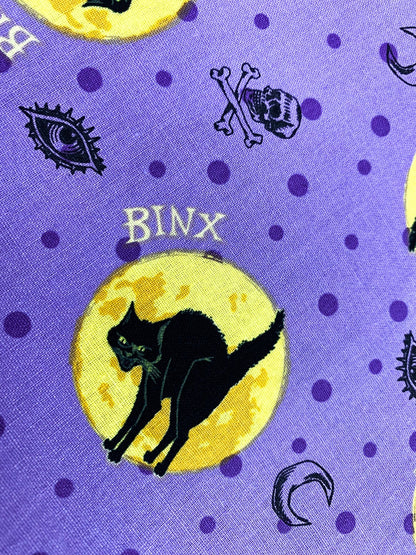 Add a touch of magic to your next sewing project with our Binx black cat Hocus Pocus fabric. Featuring a whimsical design with black cats and mystical elements, this fabric is perfect for Halloween costumes, home decor, and more. The spooky yet adorable image of Binx the black cat from the beloved movie "Hocus Pocus" will add a playful charm to any project.