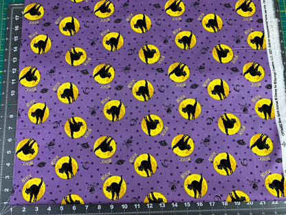 Our Hocus Pocus cat fabric is made from high-quality material that is durable and easy to work with. Whether you're a seasoned seamstress or just starting out, this fabric is perfect for all skill levels. The vibrant colors and detailed print will make your creations stand out and impress everyone who sees them.