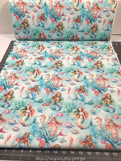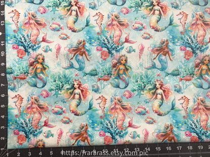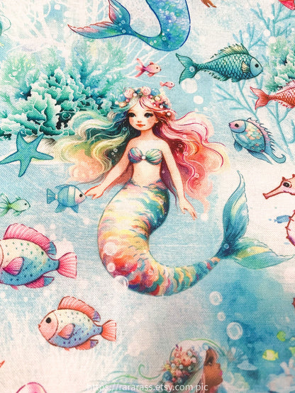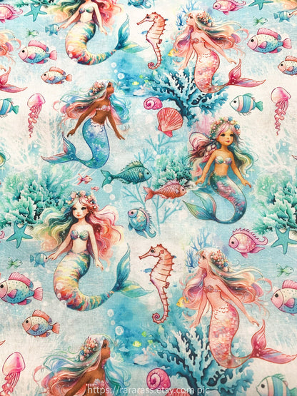 This beautiful mermaid fabric is a must-have for any DIY enthusiast or seamstress. Whether you're working on a quilt, dress, or pillow, the vibrant colors and intricate details of this fabric will make your creations stand out. Let your imagination run wild as you incorporate this whimsical design into your next sewing project.