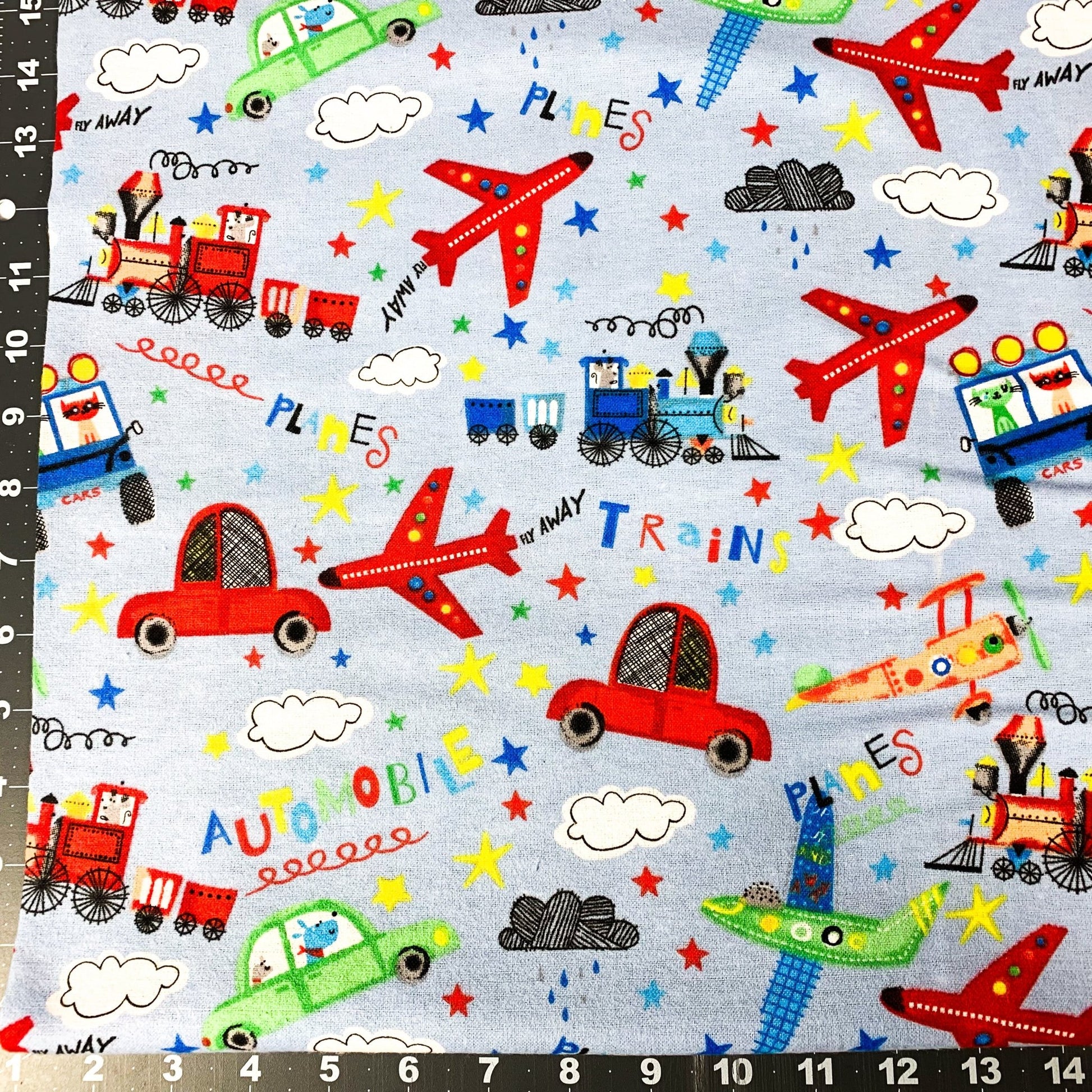 Bring a playful touch to your little one’s world with this Blue Planes, Trains, and Automobiles flannel from Oasis Fabrics. Perfectly soft and cozy, it’s ideal for baby quilt backs, pajamas, or bibs, making every snuggle extra comfy and fun. Let your baby’s imagination take flight with this charming cotton flannel!