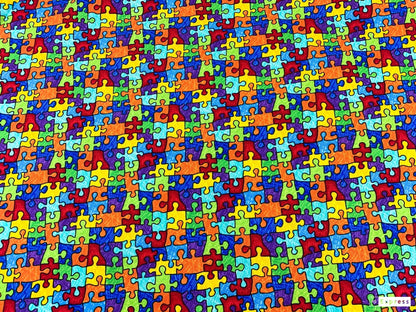 Upgrade your crafting with our Bright Jigsaw Puzzle Fabric