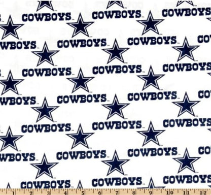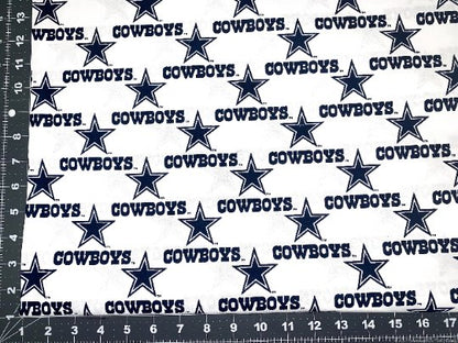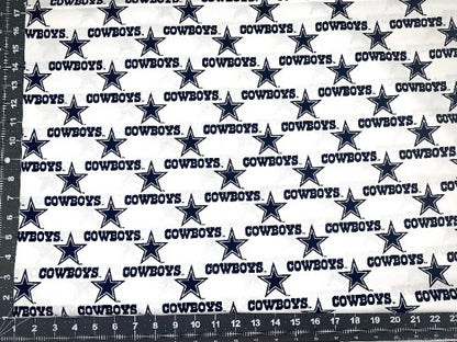 Get ready to show off your Dallas Cowboys pride with this high-quality white NFL cotton fabric. Perfect for creating custom clothing, accessories, or decor, this fabric features the iconic Cowboys logo and colors. Made from 100% cotton, it is soft to the touch and easy to work with, making it ideal for all of your DIY projects.