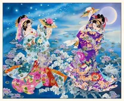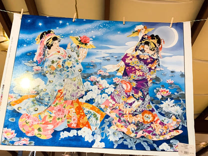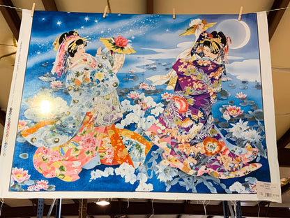 Geisha Girls Quilt Panel w Metallic M3408Cream 36" x 44"