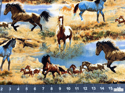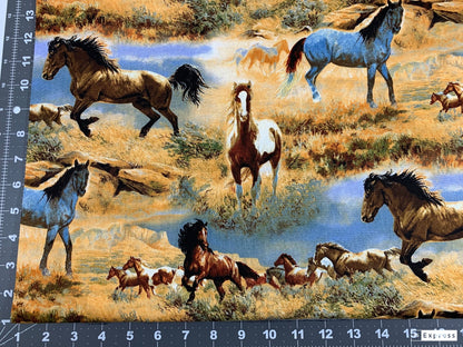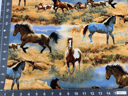 Wild Horse fabric WW-3060-6C Horses in the Prairies