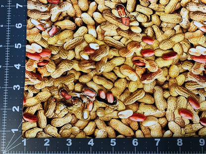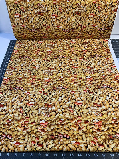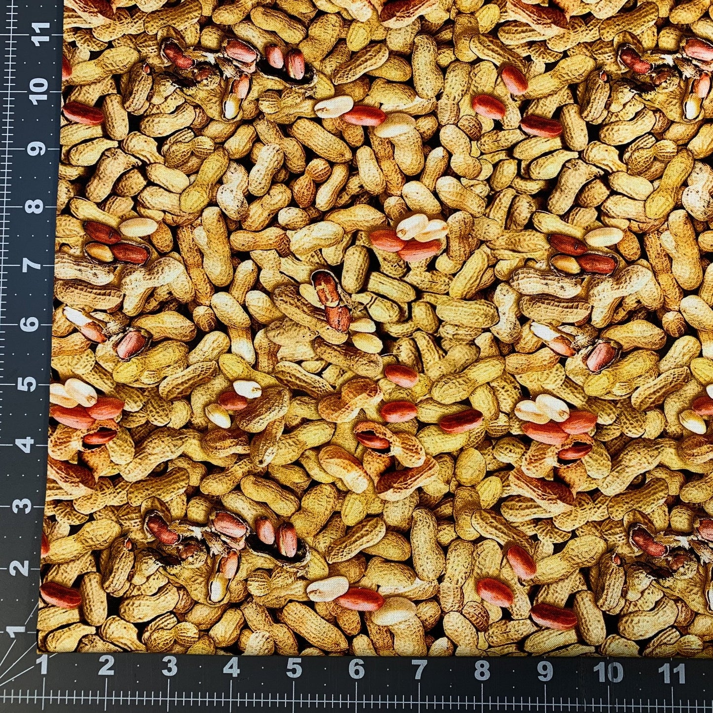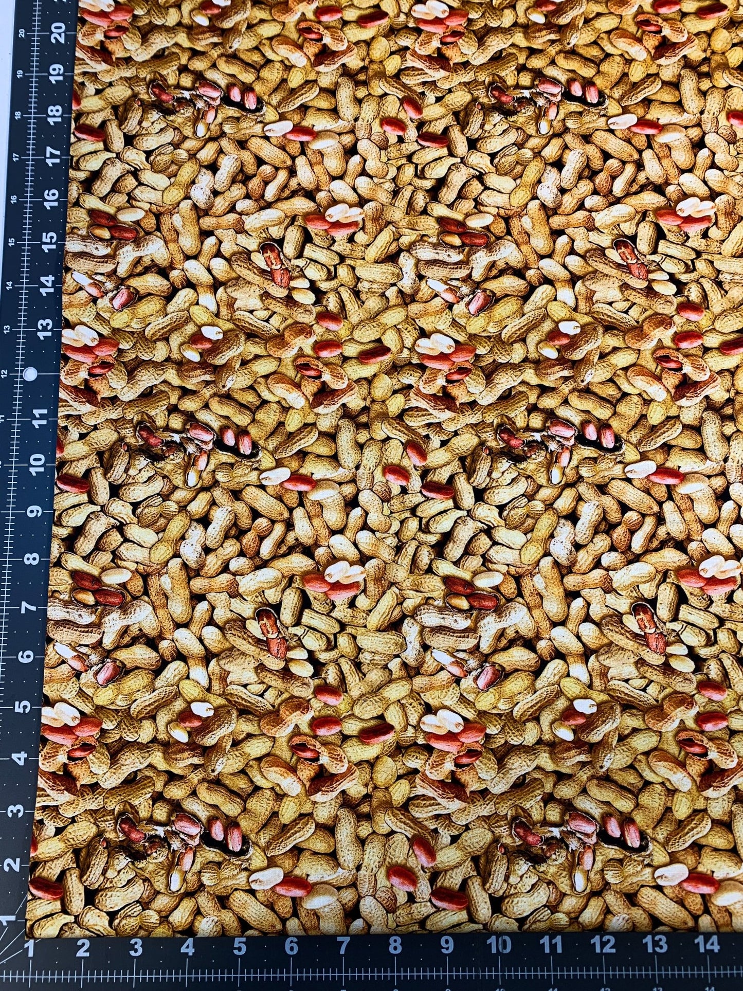 Bring a touch of whimsy to your projects with this playful cotton fabric featuring realistic in-shell peanuts. Perfect for adding a fun, natural vibe to quilts, apparel, or home décor, its soft texture ensures comfort while the detailed peanut images spark smiles and conversation. Ideal for peanut lovers and creative crafters alike Great for a bar apron or shopping bags for peanuts