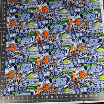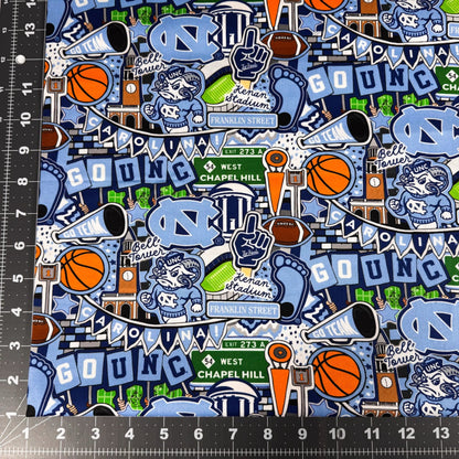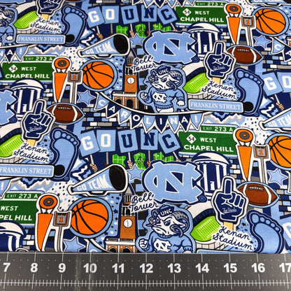Celebrate your Tarheel pride with this playful UNC Tarheel fabric! Featuring iconic Ramses and Chapel Hill motifs, it’s perfect for fans of North Carolina’s top football and basketball teams. Whether crafting game day gear or spirited decor, this cotton fabric brings college spirit to every stitch. This fabric has the old well and all things Carolina