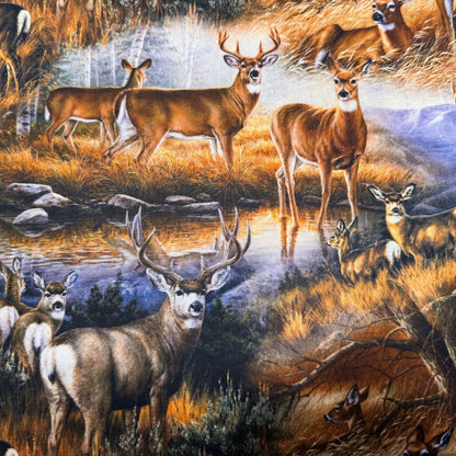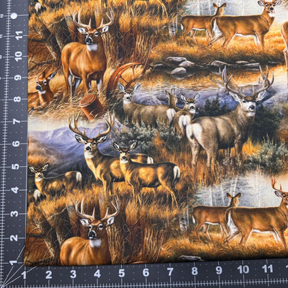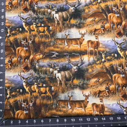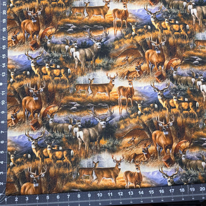 Bring the outdoors to your next project with Wild Deer Fabric WW-3146 Deer Glance by David Textiles. Featuring a charming 10-point buck and his family, this cotton fabric is perfect for cozy quilts or a fun, nature-inspired men's Hawaiian shirt. Let these playful deer add a touch of woodland whimsy to your creations!
